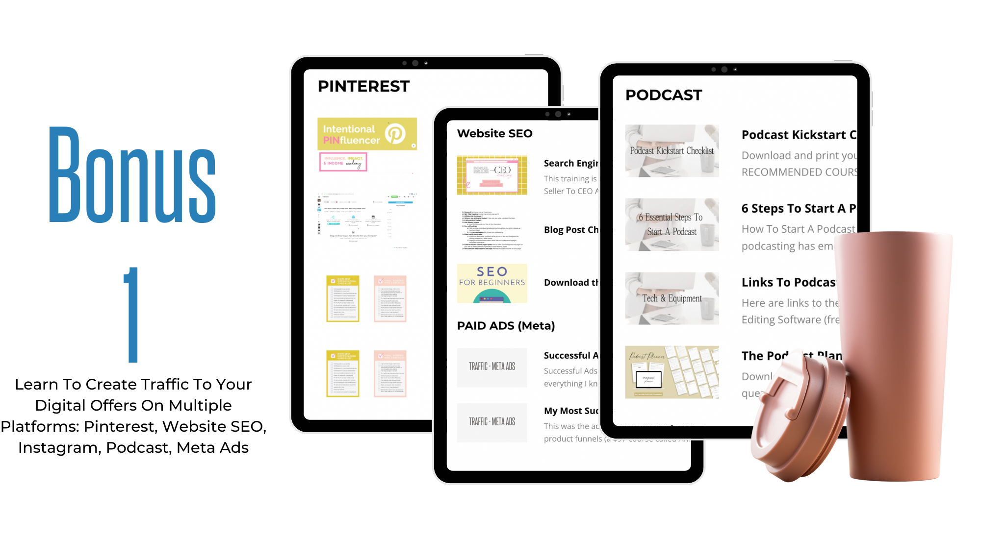 ✅ BONUS: Ashley's Pinterest Masterclass to escalate traffic to your digital product funnel.