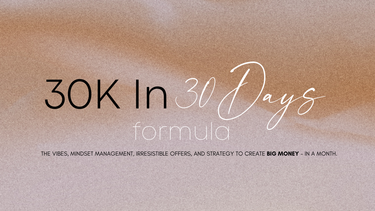 The vibes, mindset management, irresistible offer/s and strategy to create BIG MONEY - in a month!]
