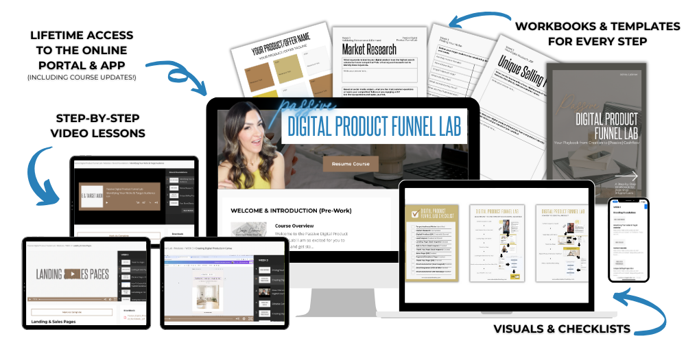 We go BEYOND just the creation of your digital product, and into how to set up your professional passive digital product funnel and effectively drive traffic to it: