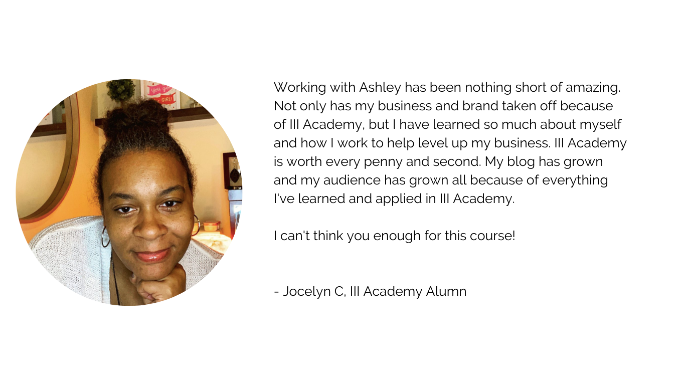 A lot of times we were able to do things together on our calls too and that was exactly what I needed. Ashley is amazing and this program is absolutely worth the investment. I also have lifetime access so, anytime I need a refresher or come across something I don’t know how to do, I just go back and reference the packet or videos for a walk through.