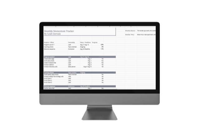 Monthly Planning Spreadsheet to help you map out exactly what you need to do to bring in the clients and income more easily