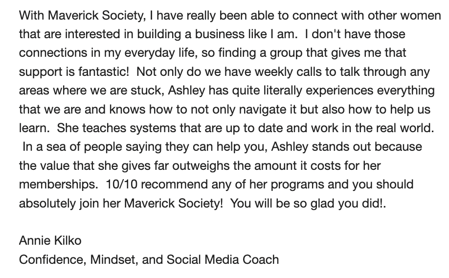 I WANT TO JOIN ASHLEY'S COACHING MEMBERSHIP!Our Members LOVEÂ My Coaching &Â The Maverick Society Community!